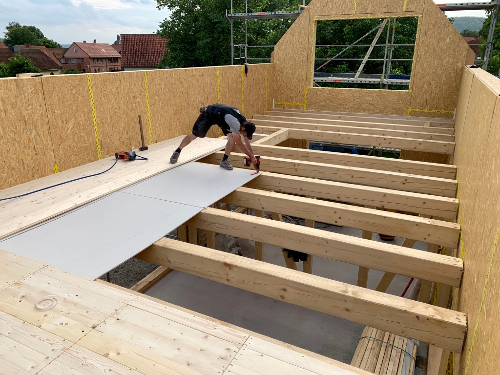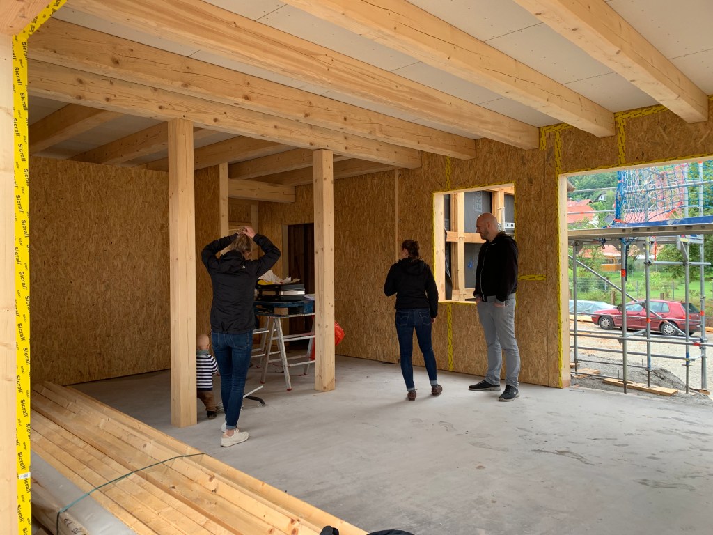 Aber das Bauteam rund um Timon nimmt sich jedes Mal die Zeit, unsere Frage zu beantworten, Dinge kurz zu erklären oder auf Punkte hinzuweisen, die zu beachten sind. Wir halten uns so gut es geht aus den laufenden Arbeiten raus, aber es ist auch einfach mal schön, mit dem Bauteam zusammenzusitzen und sich auszutauschen, mehr über diesen spannenden Beruf und die Arbeiten zu erfahren. Wir fühlen uns immer willkommen und gut aufgehoben in der Fuhrberger-Runde – jetzt freuen wir uns auf das gemeinsame Richtfest!