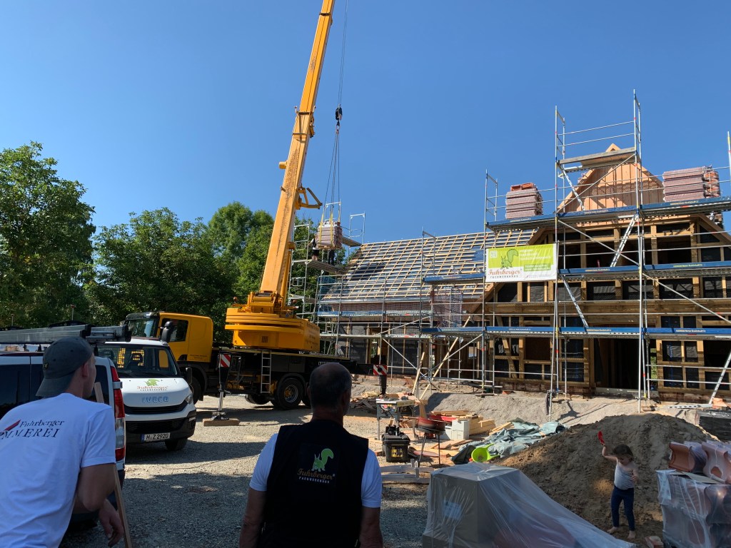 Mit Dachdeckermeister Armin und Lehrling Fabian verstärkt, ging unser Bauteam an die Vorbereitung des Dachausbaus – das Ergebnis kann sich sehen lassen und wurde trotz anfangs noch schlechten Wetters dann bei schönstem Sonnenschein termingerecht vorangetrieben.